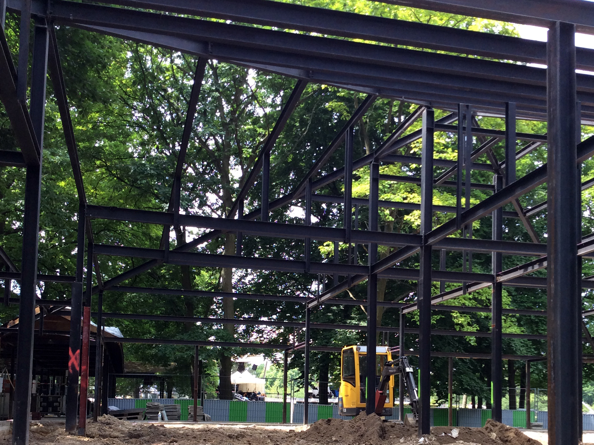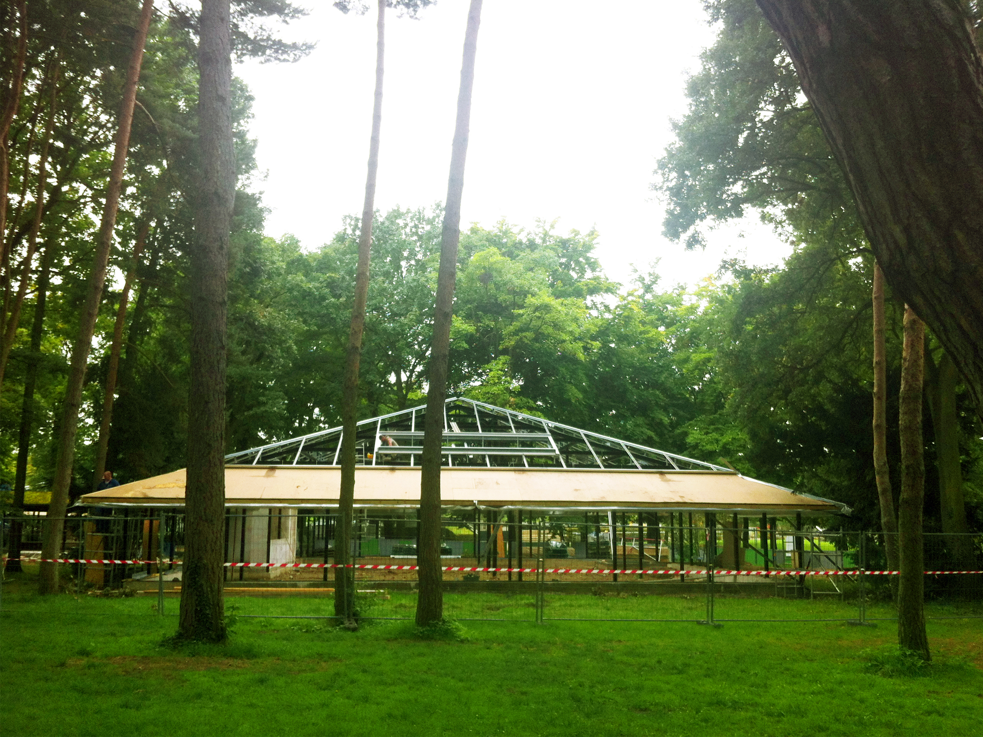 The Vincennes Floral Parc construction site is progressing; we can now appreciate the Japanese-inspired structure dating from 1969.