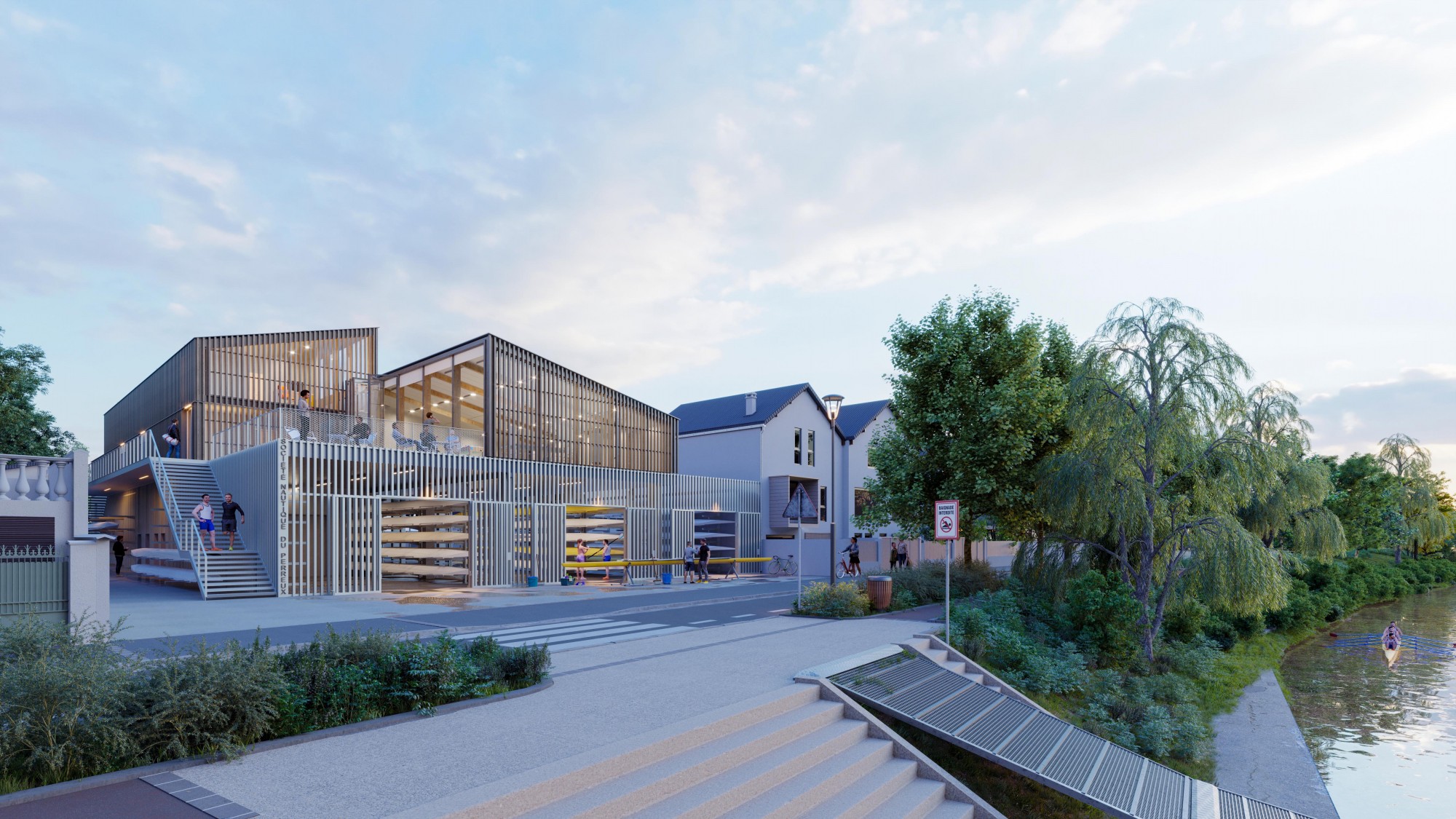 On that occasion, we introduced publicly our Torcy Canoë Kayak Club’s nautical pole. Entirely built of wood, the nautical pole will be at the heart of an exceptional landscape site showacsing the ecosystem of the Marne riverbanks. Overhanging on the riverbanks, the diverse body of the building are placed in order that they evocate a fisherman village built on piles.