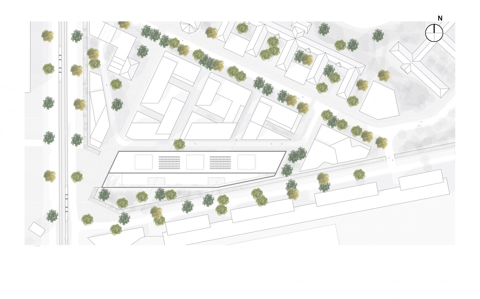 The building’s location at the entrance to the Chérioux ZAC (joint development zone) contributes to the overall composition of the site, in keeping with the architectural and landscape fabric inherited from the 1930s. The project takes care to assert its presence without ostentation, offering a clear volumetry and a strong institutional image.