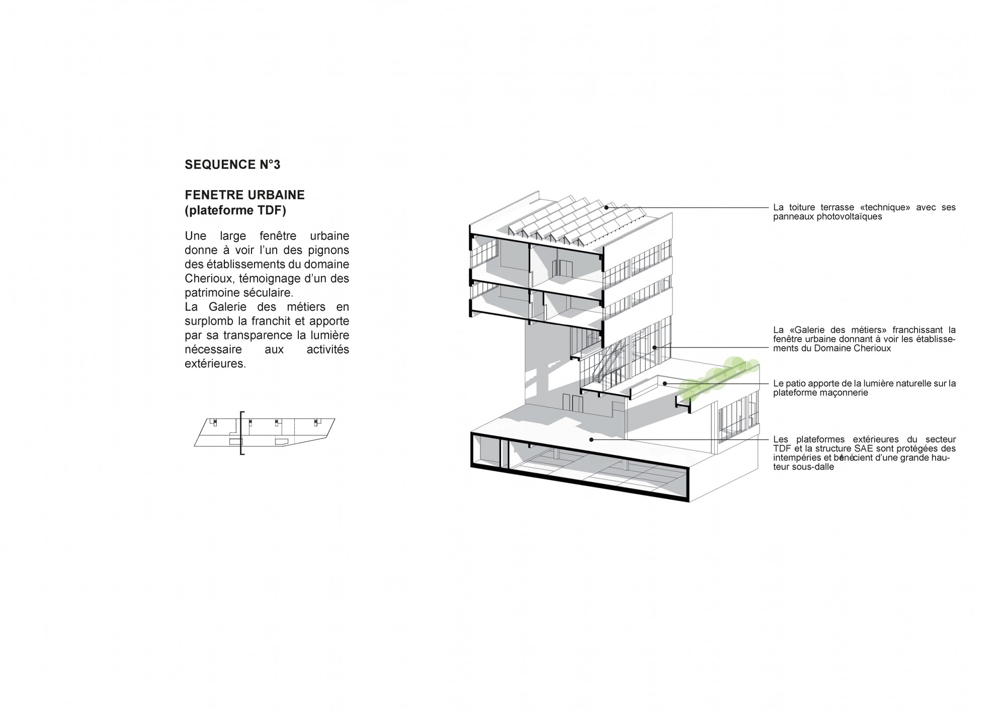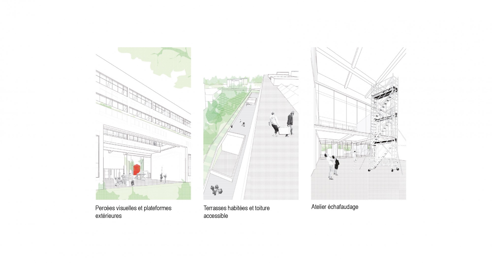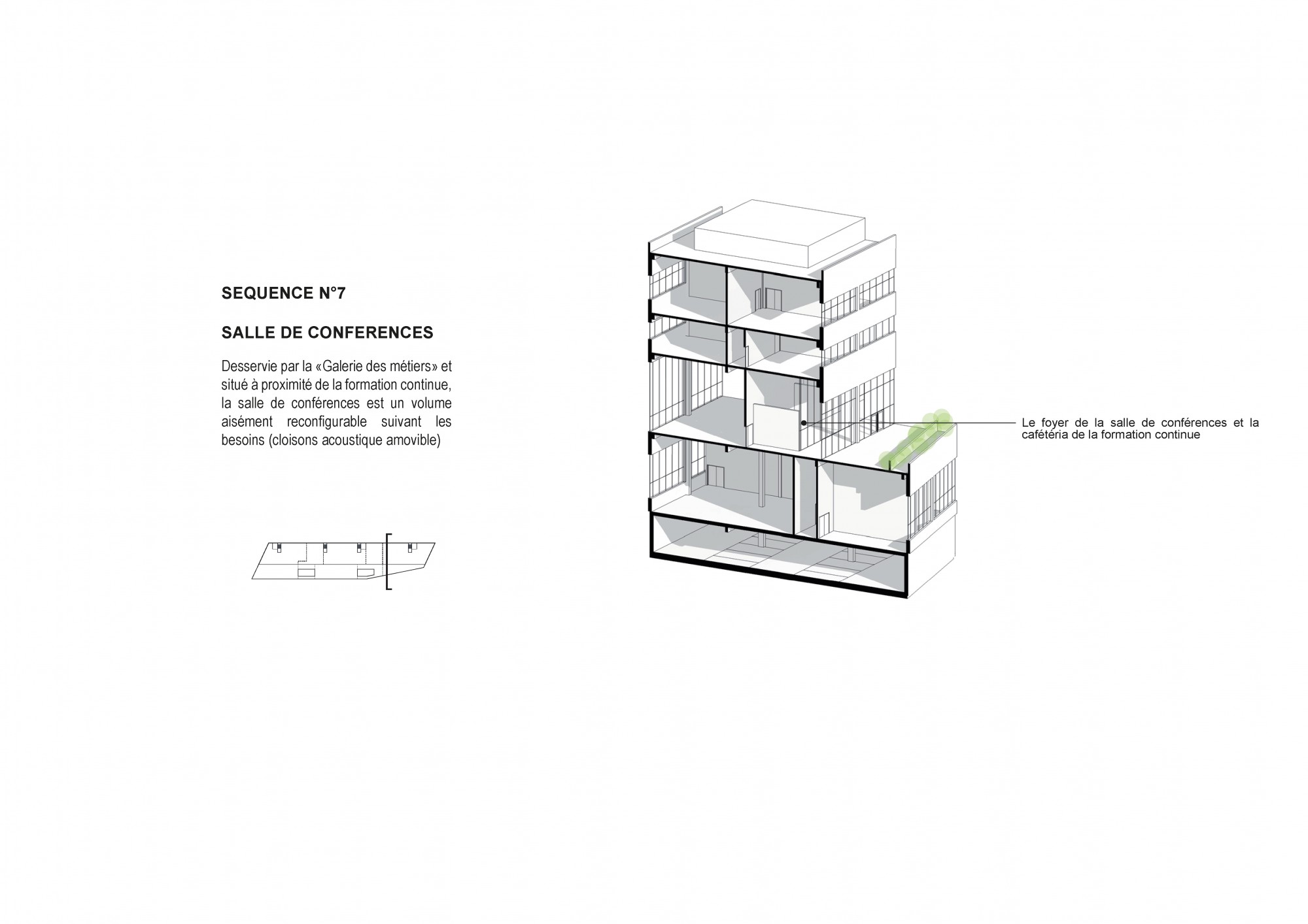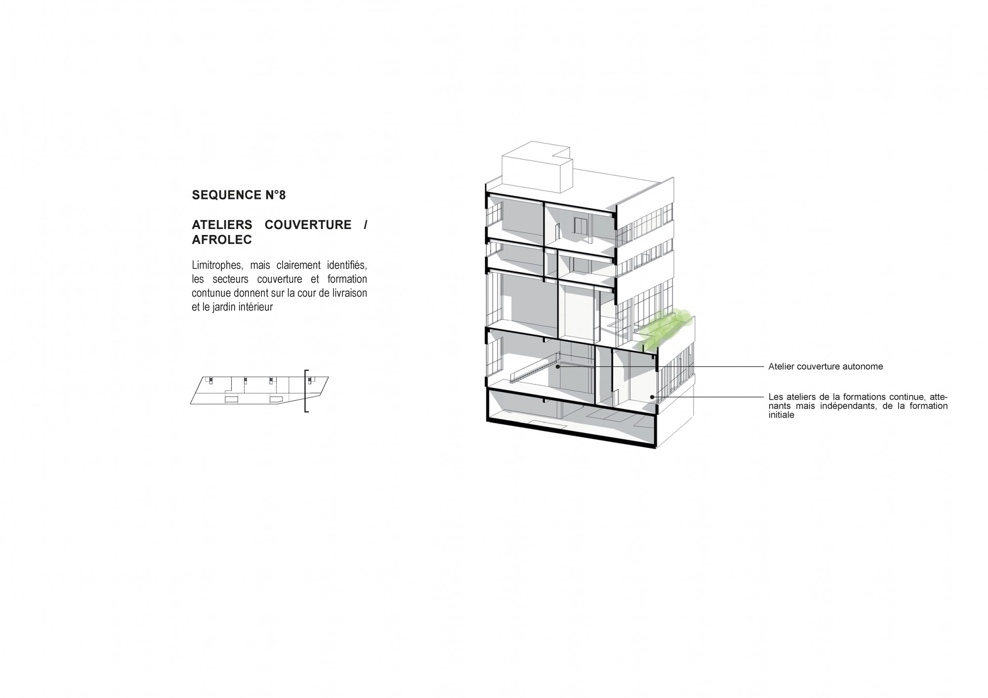 The project aims to create the conditions for multidisciplinary learning, based on shared spaces that encourage mixed use and interaction between different trades. The proposed architecture adapts to the diversity of the program while ensuring overall clarity and functional efficiency in the service of knowledge transfer.