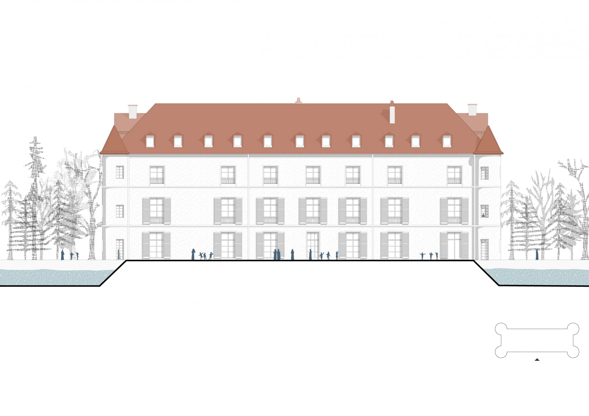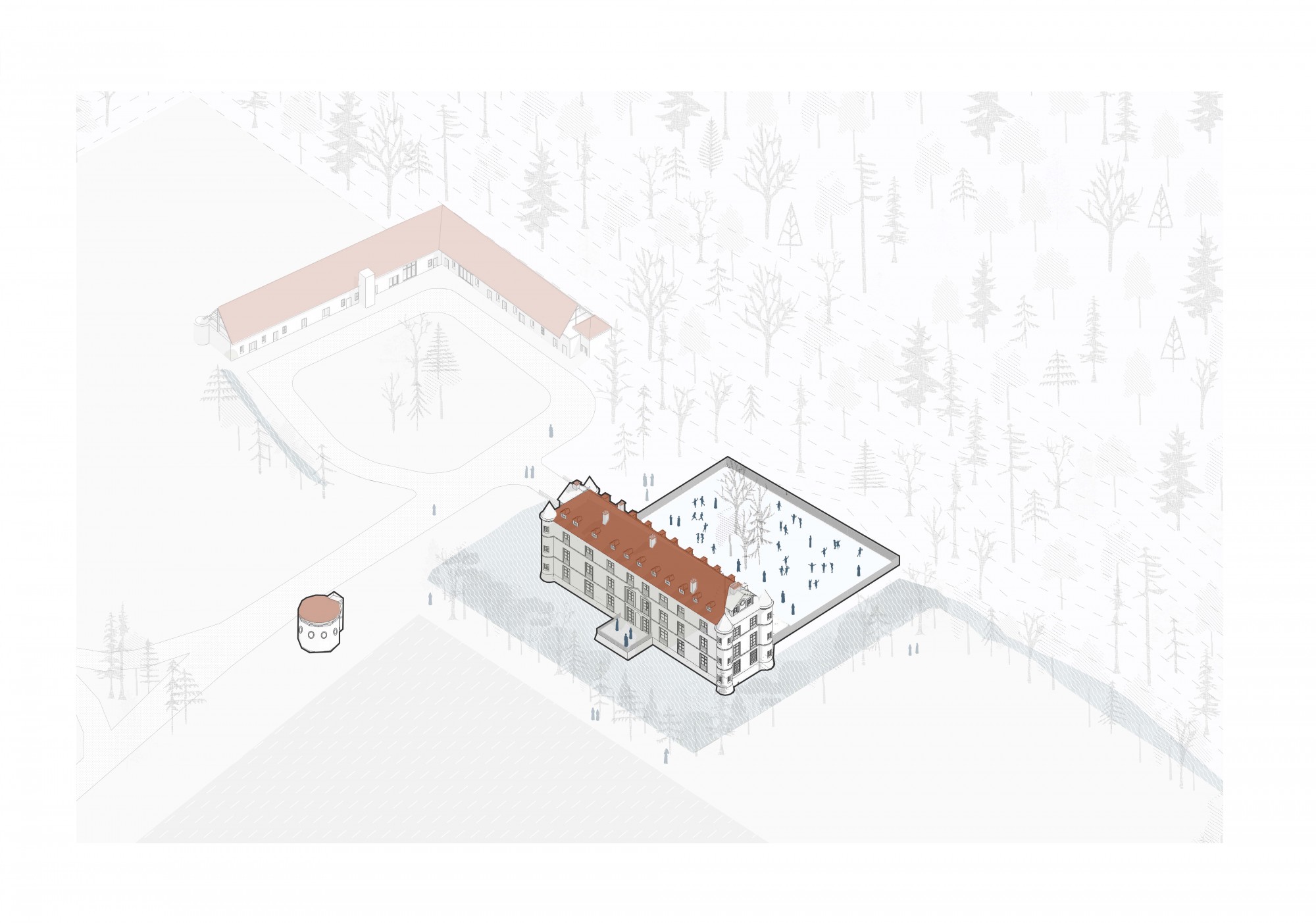 The ground floor of the château will be dedicated to shared facilities: infirmary, chapel, management office, and tea room.