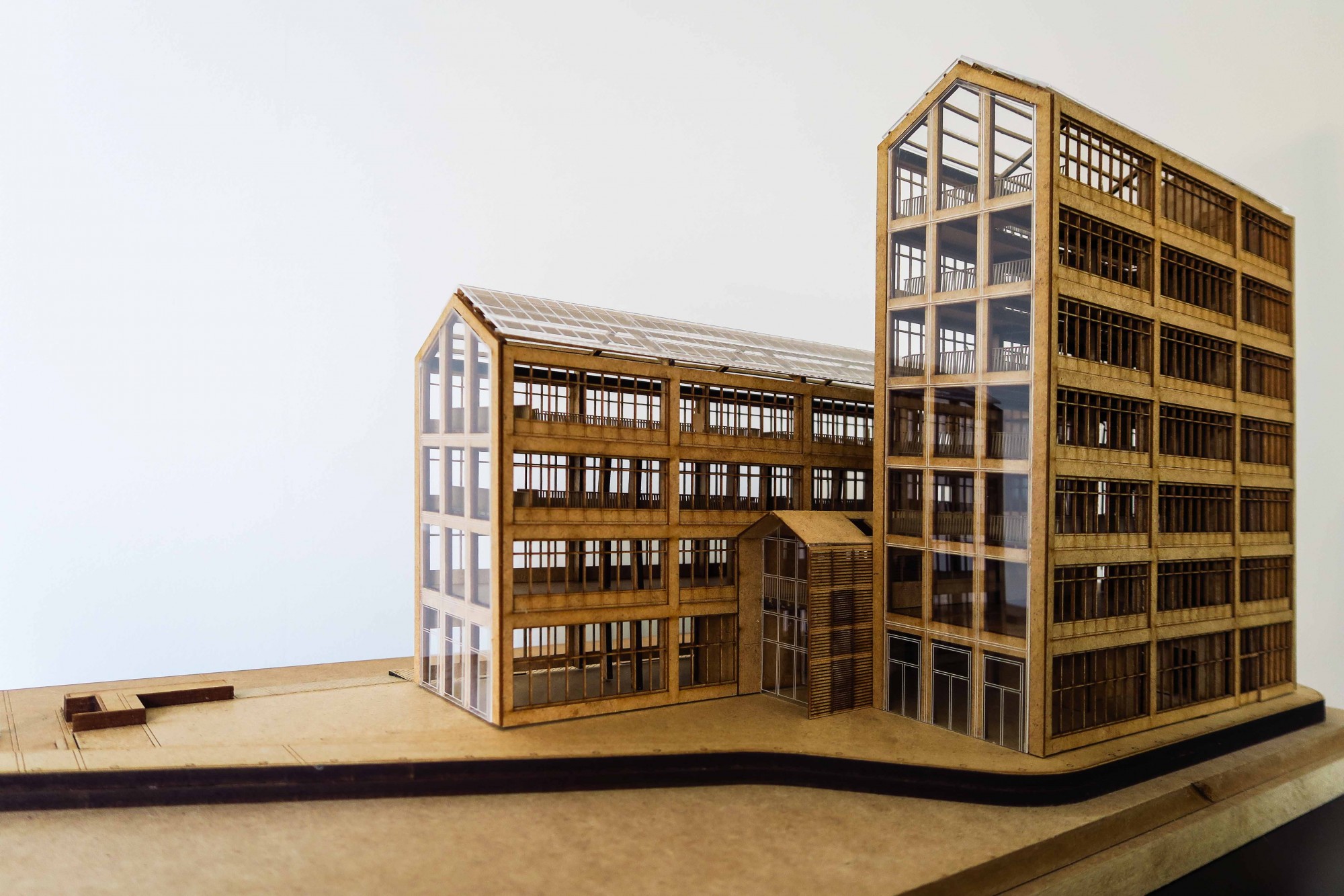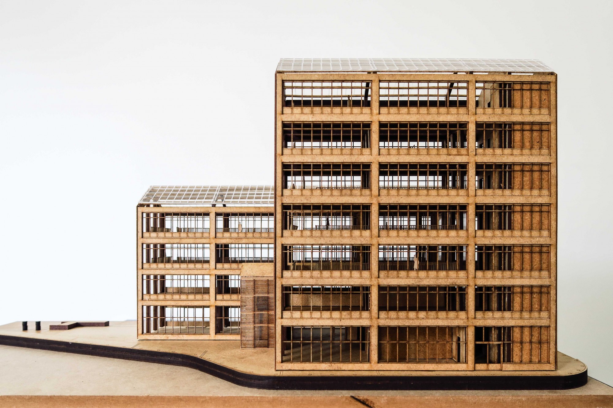 A vertical fissure runs through the entire height of the building, bringing light, ventilation, and clarity to circulation.