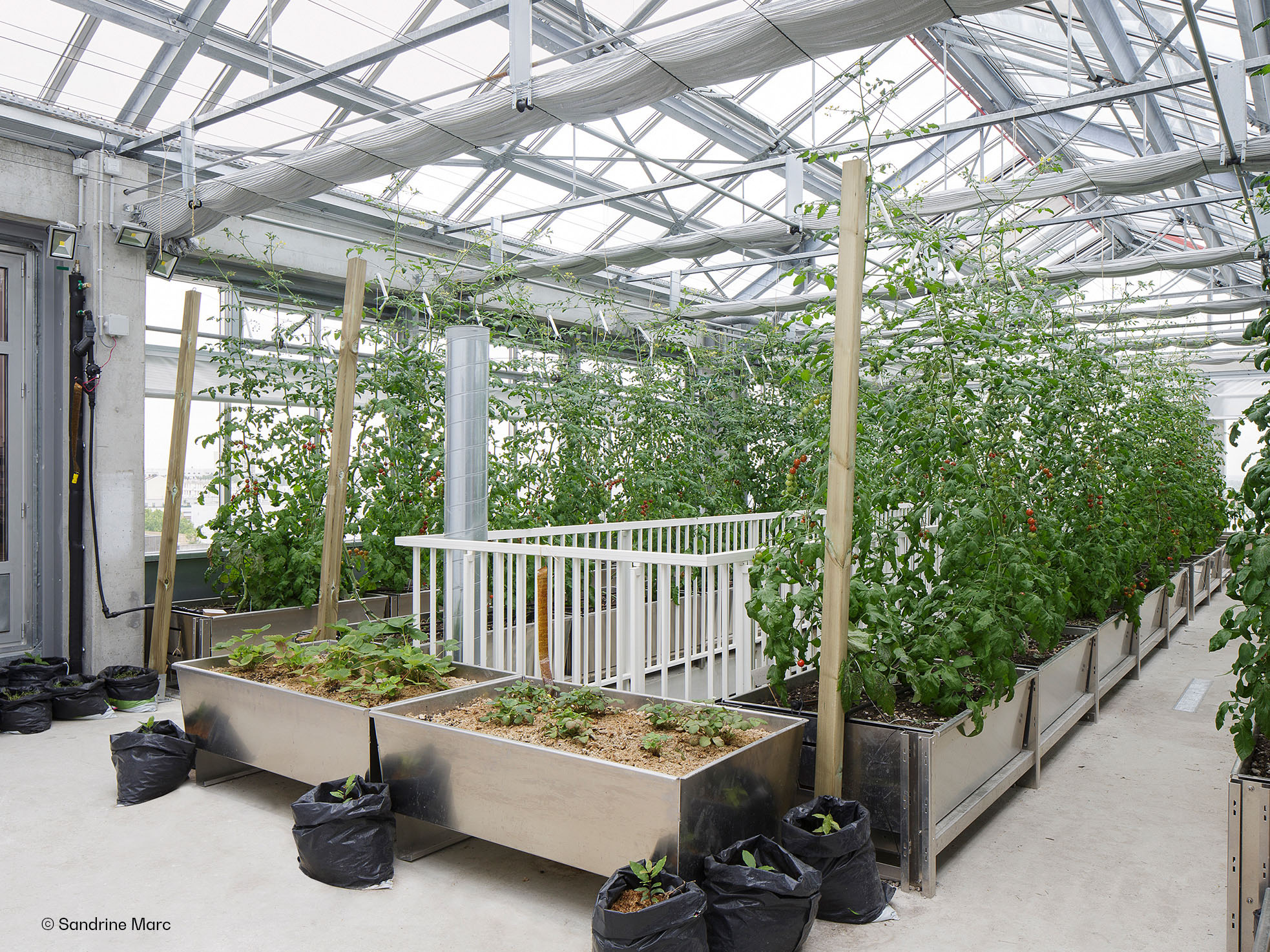 The architecture adopts a rational, capable, and flexible logic, inspired as much by horticultural greenhouses as by industrial buildings, serving agricultural efficiency.