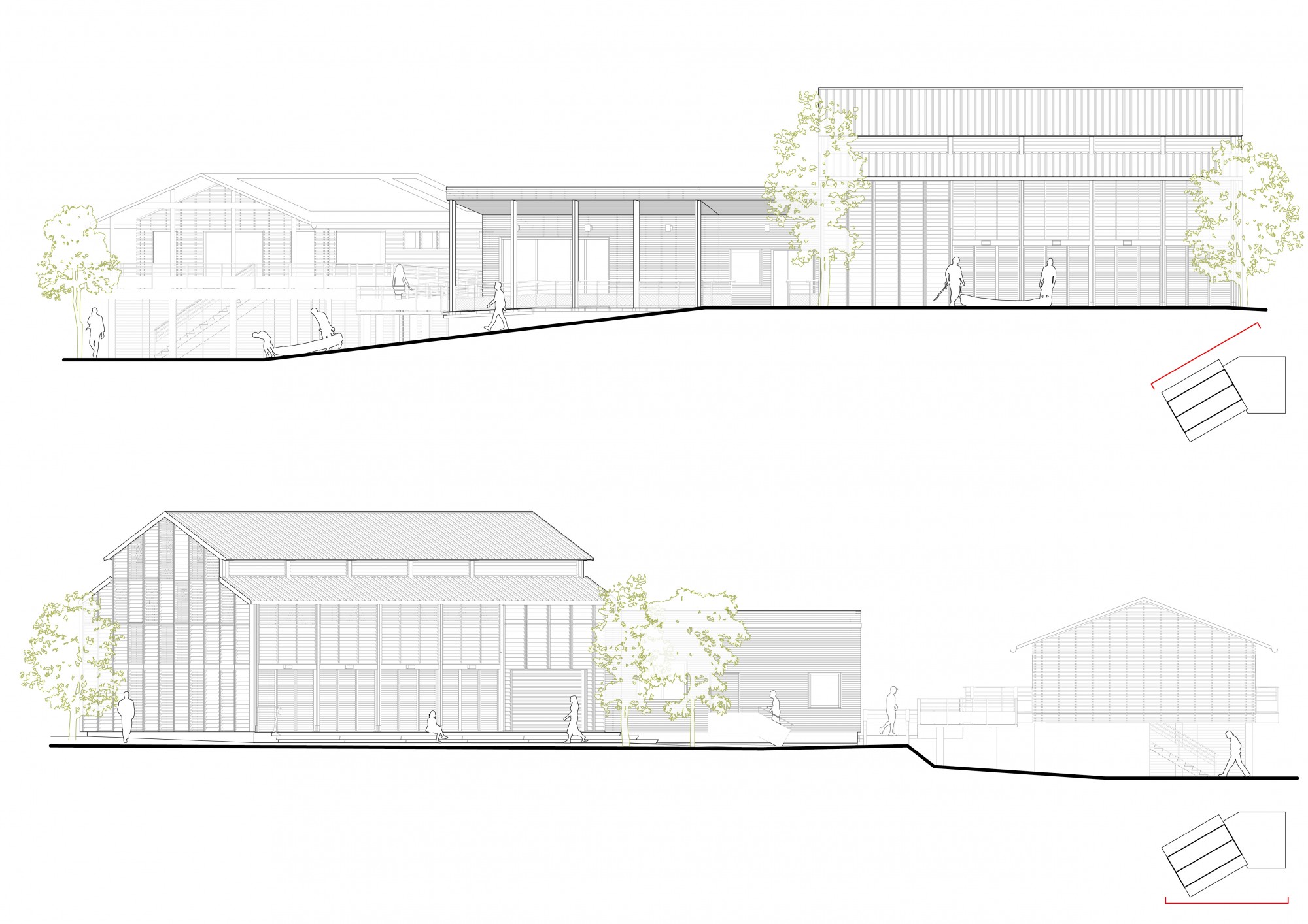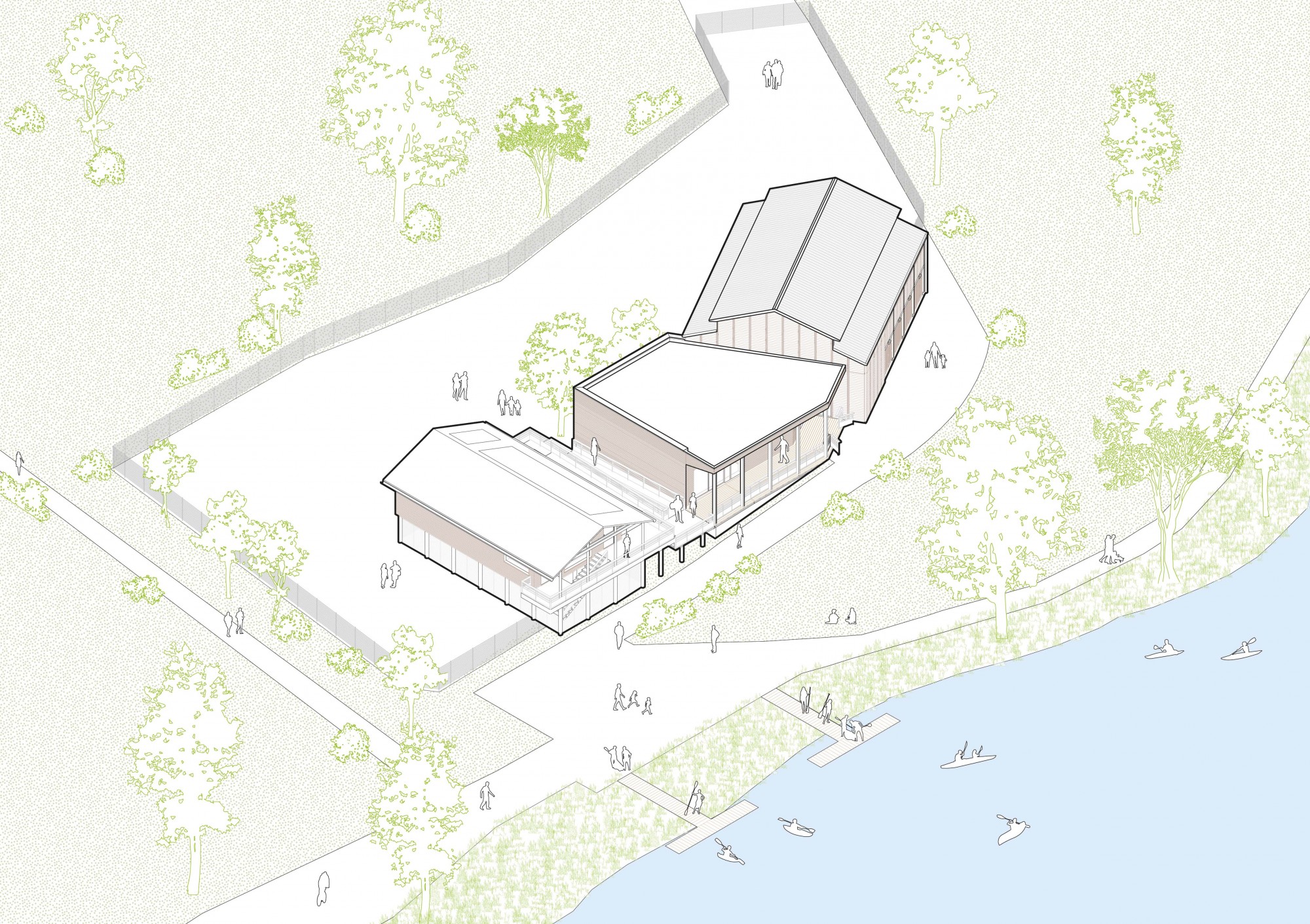 Inspired by agricultural hangars, the project forms a functional, legible complex that opens onto the banks of the Marne, in a spirit that is both landscaped and lacustrine.