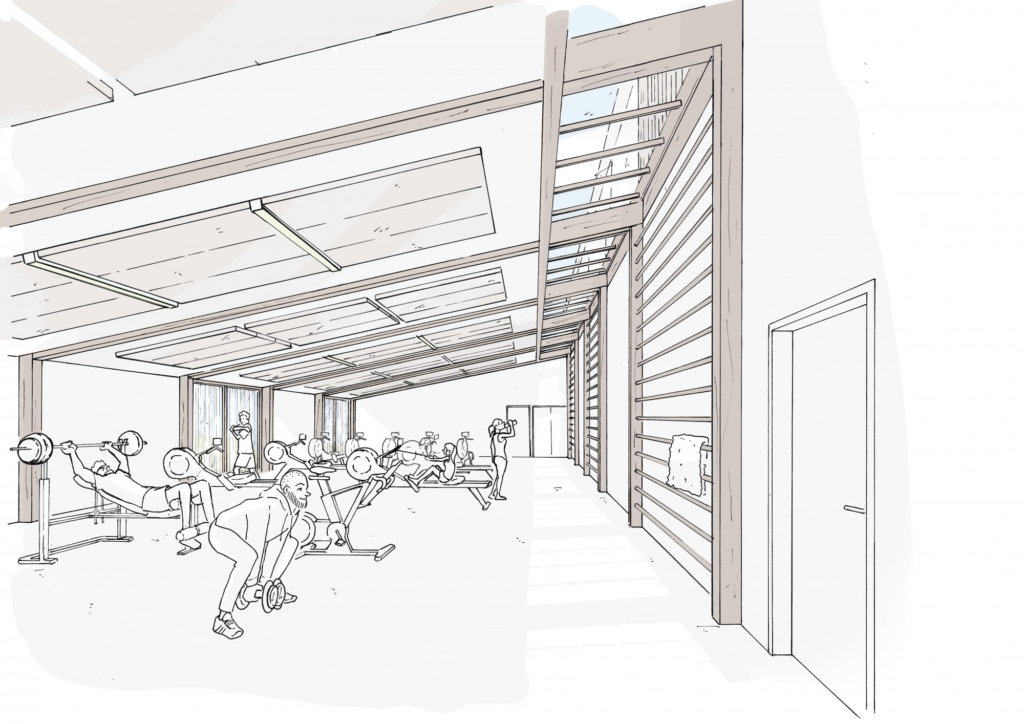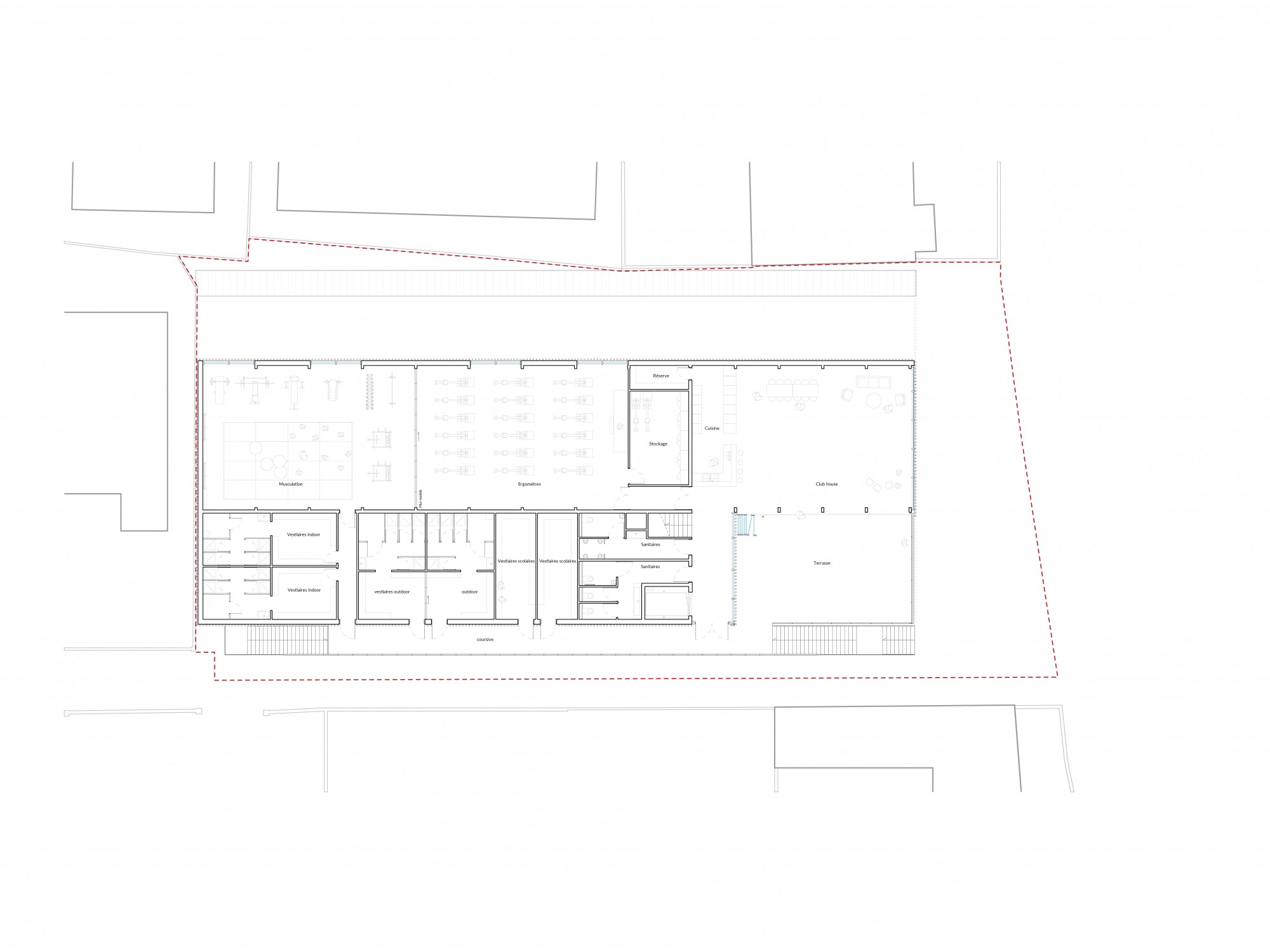 stockage optimisées, les locaux dédiés à la vie du club sont associés afin d’économiser les circulations et faire en sorte que les usagers se repèrent aisément et au plus court.