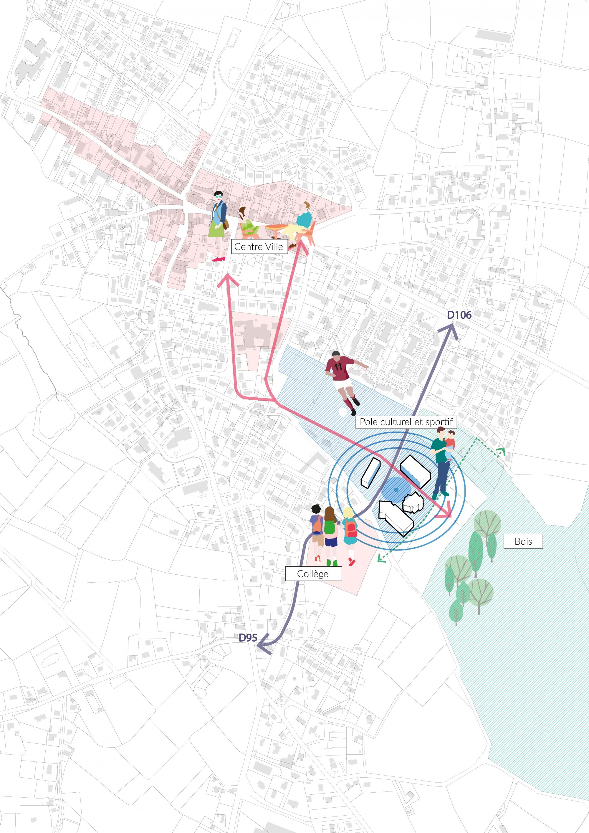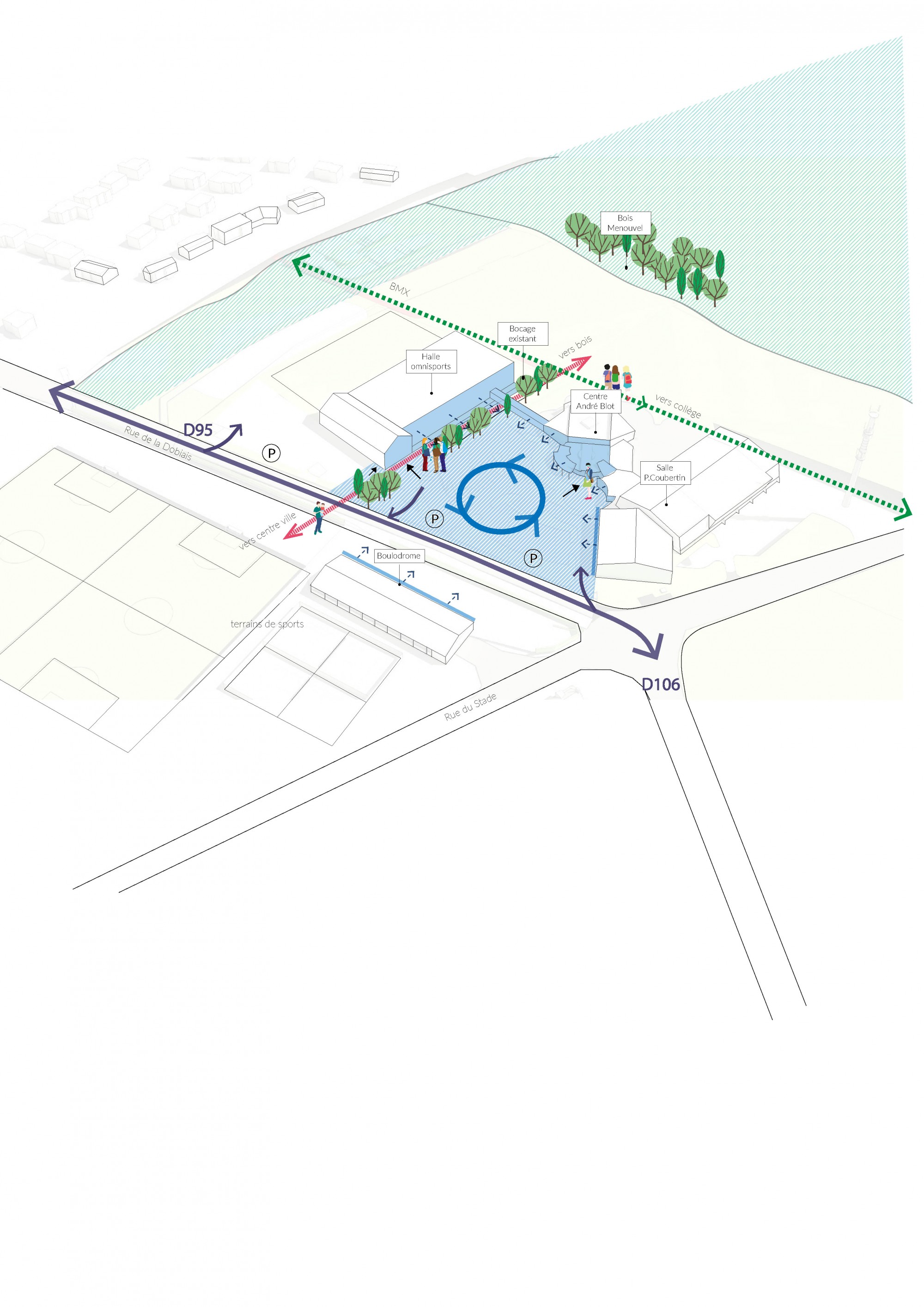 Le projet propose de répondre à trois principaux objectifs : faire rayonner ce pôle sportif et culturel à l’échelle intercommunale, assurer un ensemble bâti cohérent entre nouveau et existant, préserver et respecter l’environnement naturel.