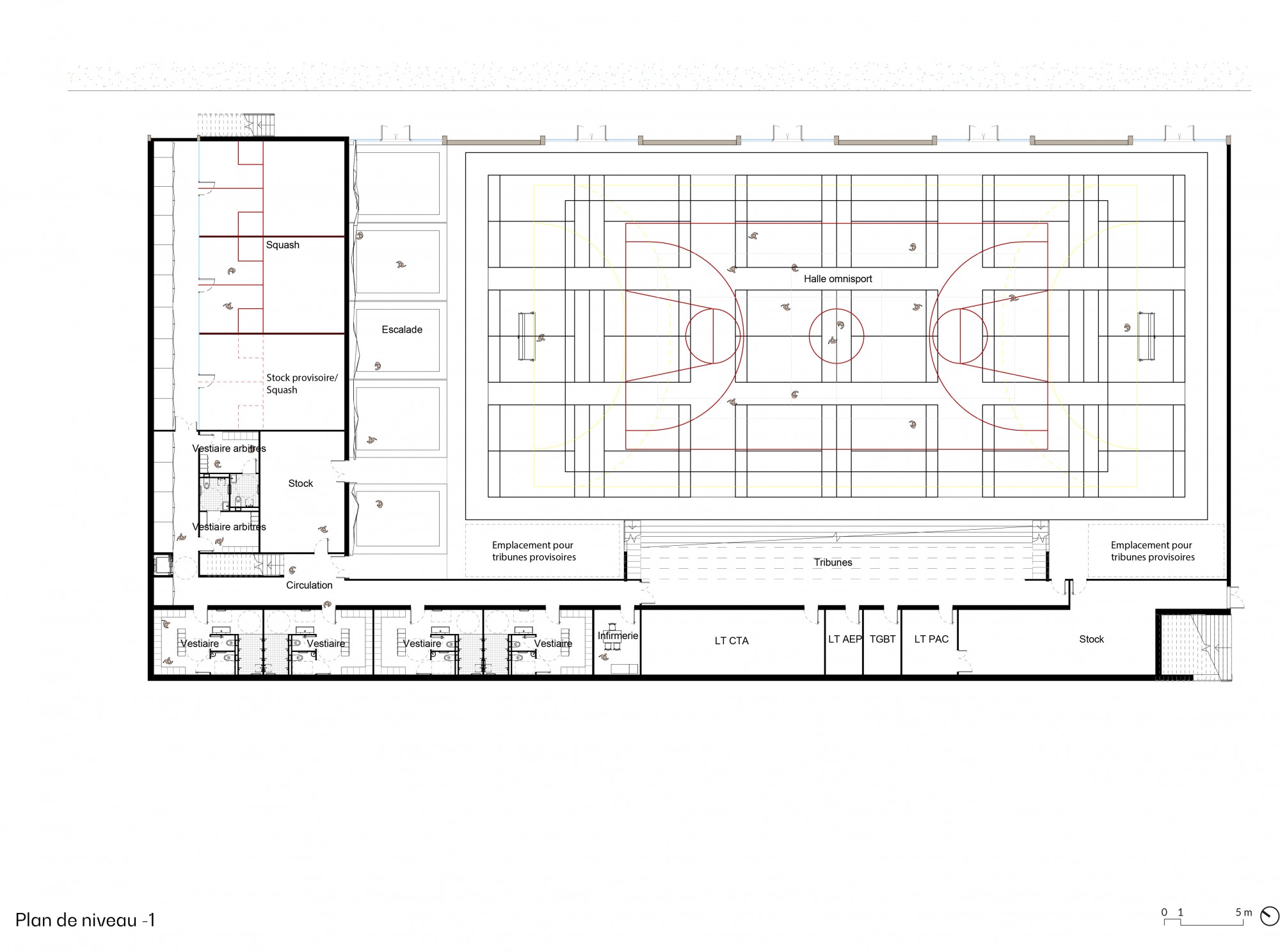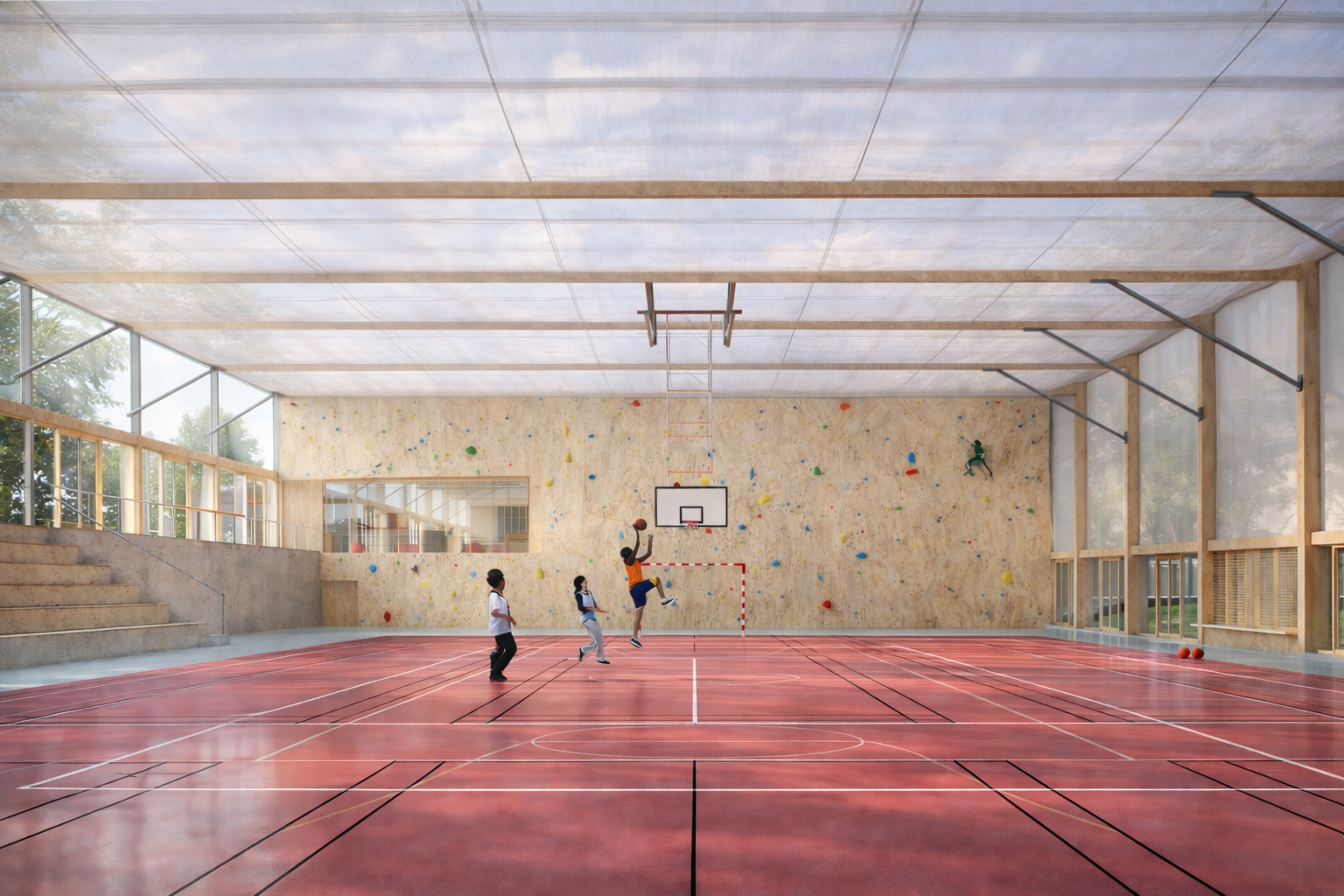 Il est conçu pour accueillir une diversité d’usages : compétitions sportives, spectacles, séminaires, mêlant travail, culture et pratique physique.