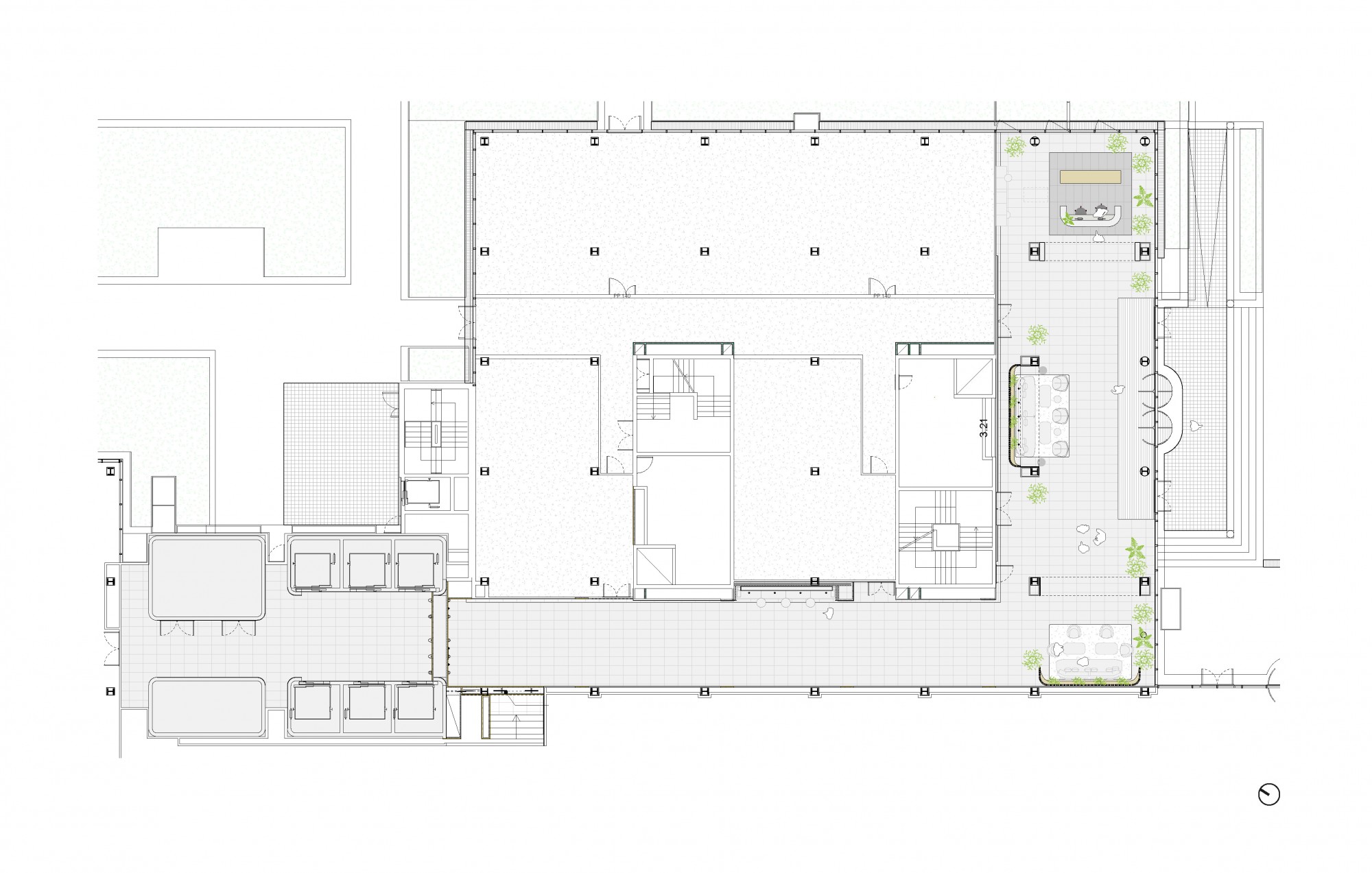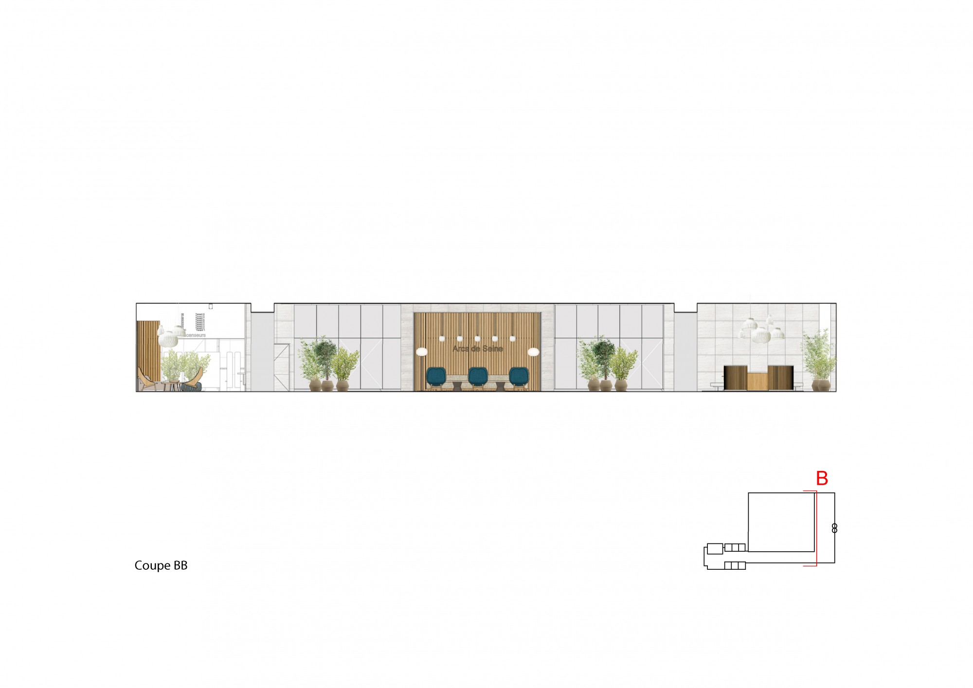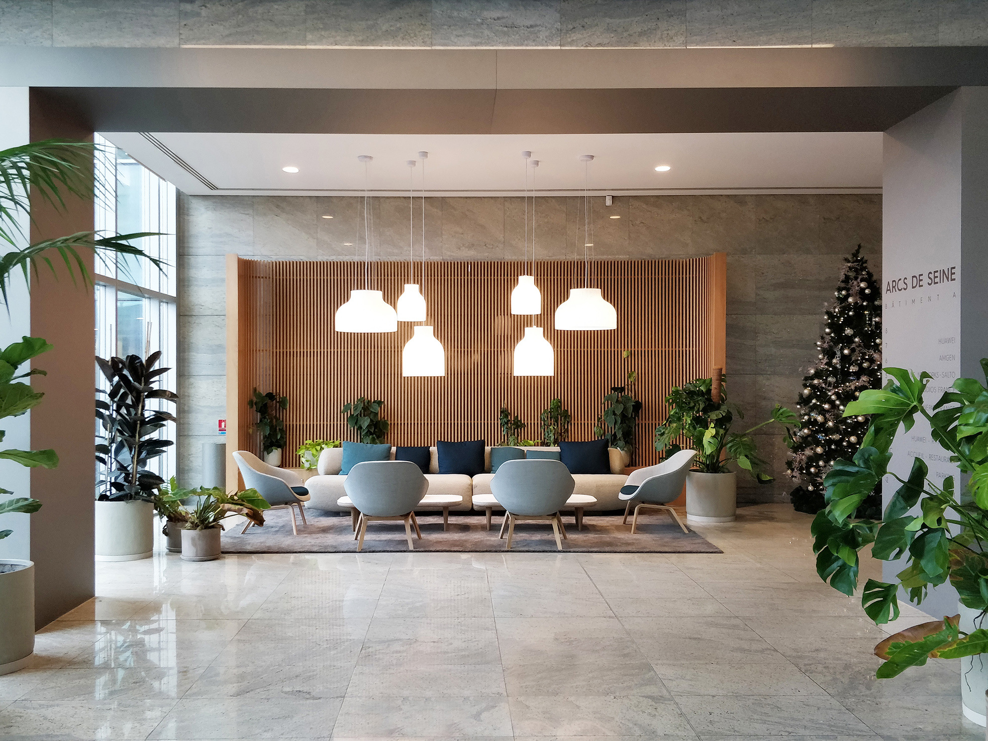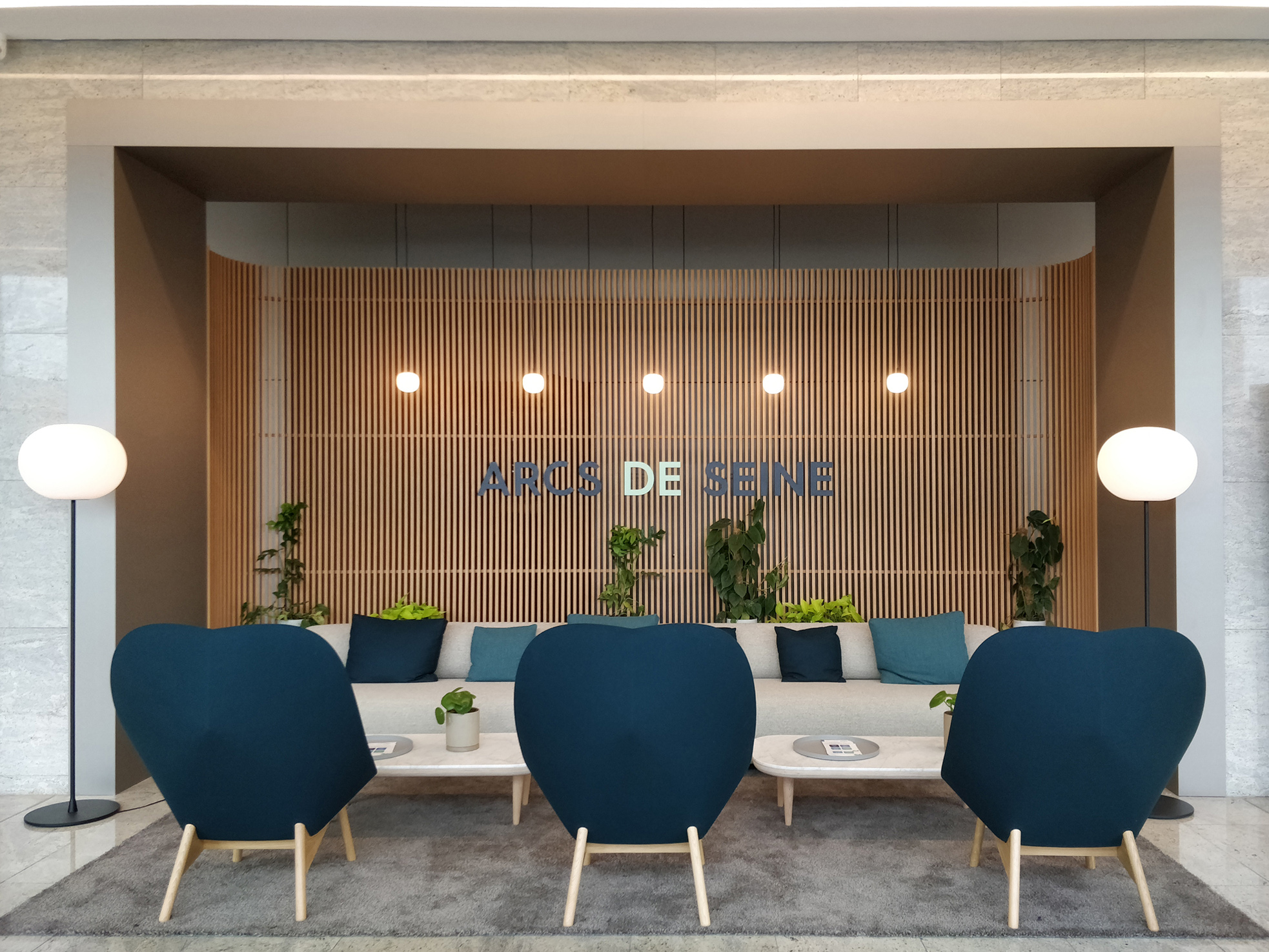 L’agence est aujourd’hui en charge de la rénovation des plateaux de bureaux et des halls des bâtiments A et B, ainsi que de la création de nouveaux espaces partagés : un business center et une salle de fitness viennent compléter l’offre de services du campus.