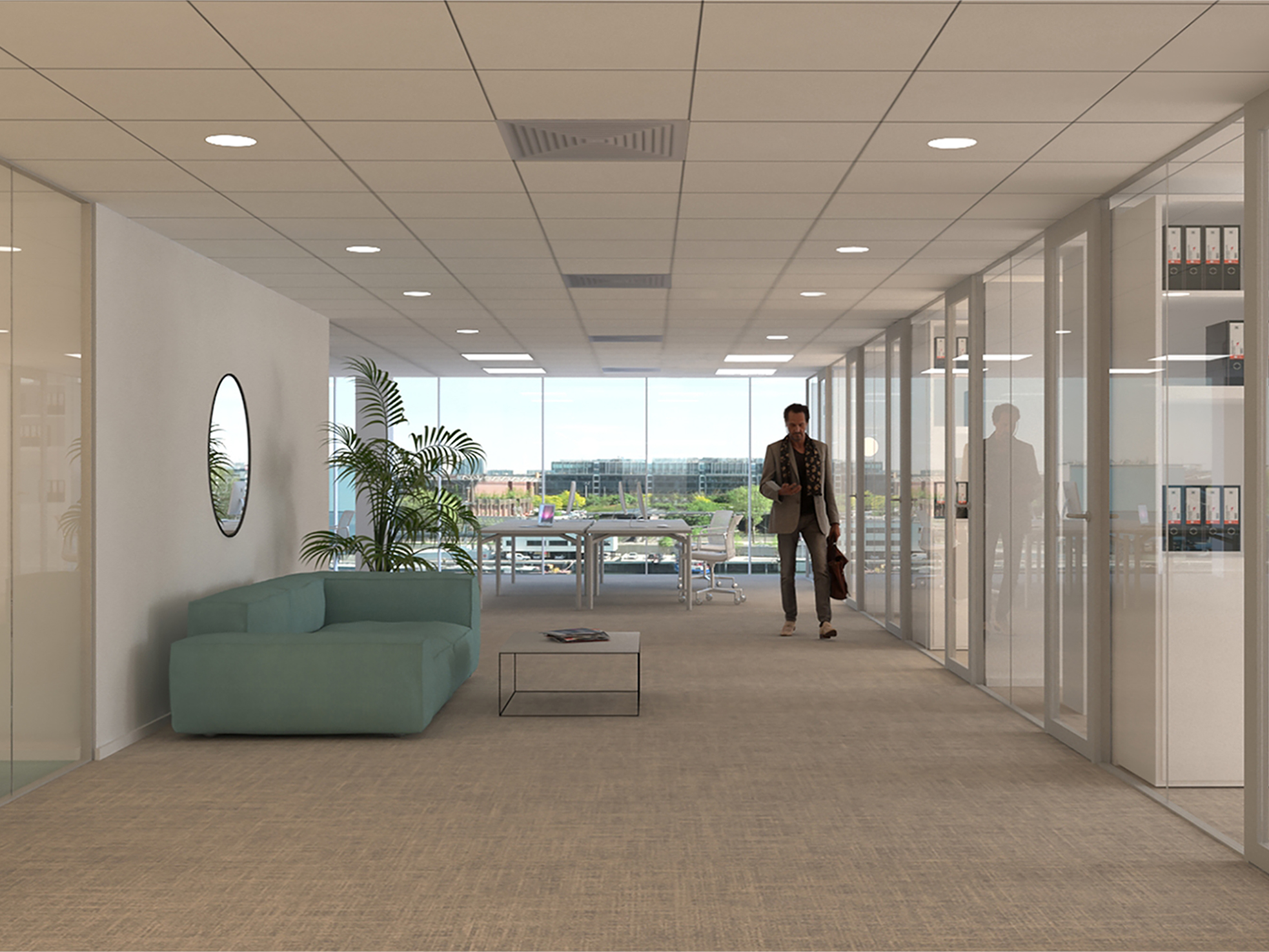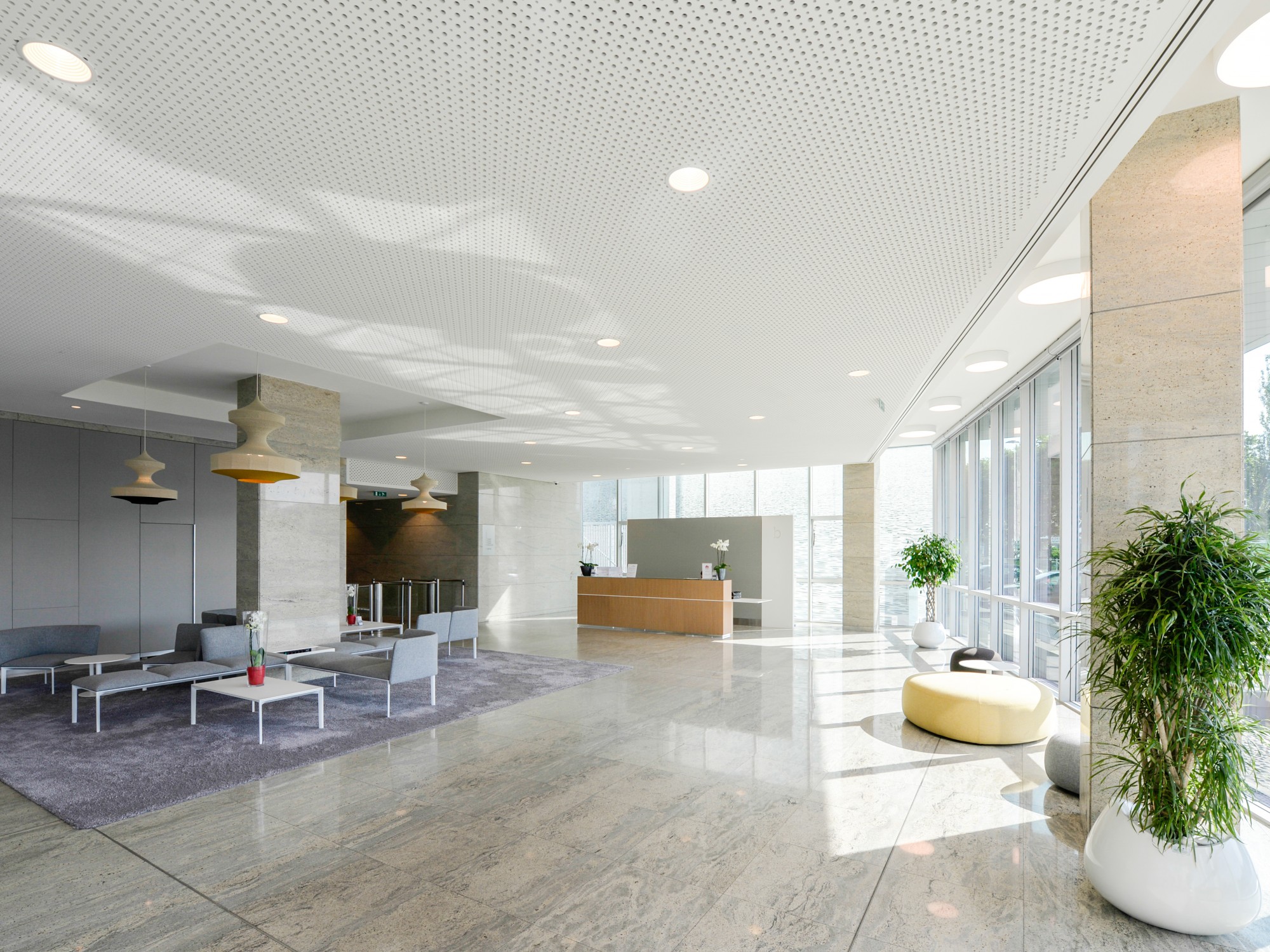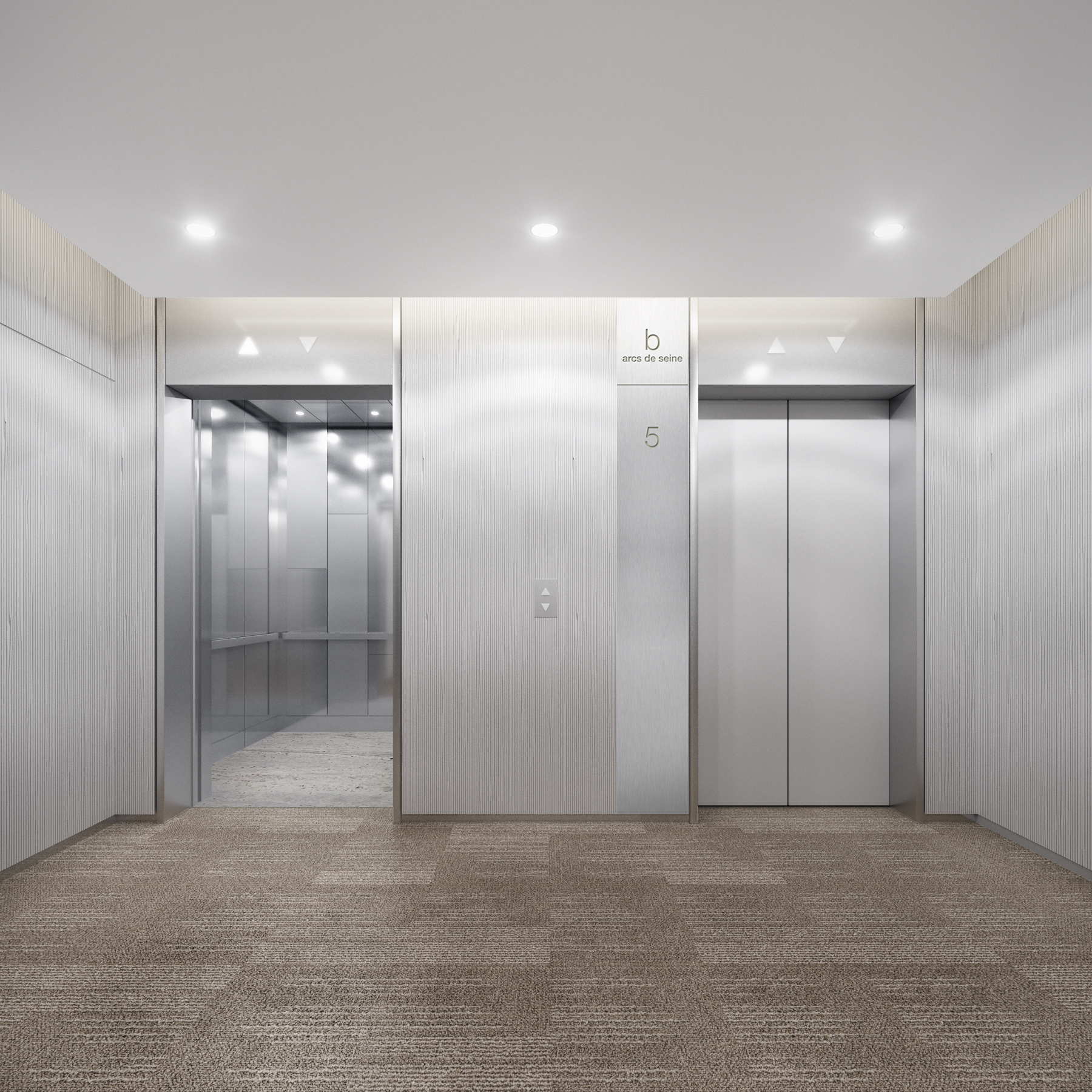 Le bâtiment B a été entièrement repensé, de la zone de réception aux étagères des bureaux et aux halls d’ascenseur. L’ensemble du parcours utilisateur a été retravaillé pour offrir des espaces lisibles, efficaces et agréables.