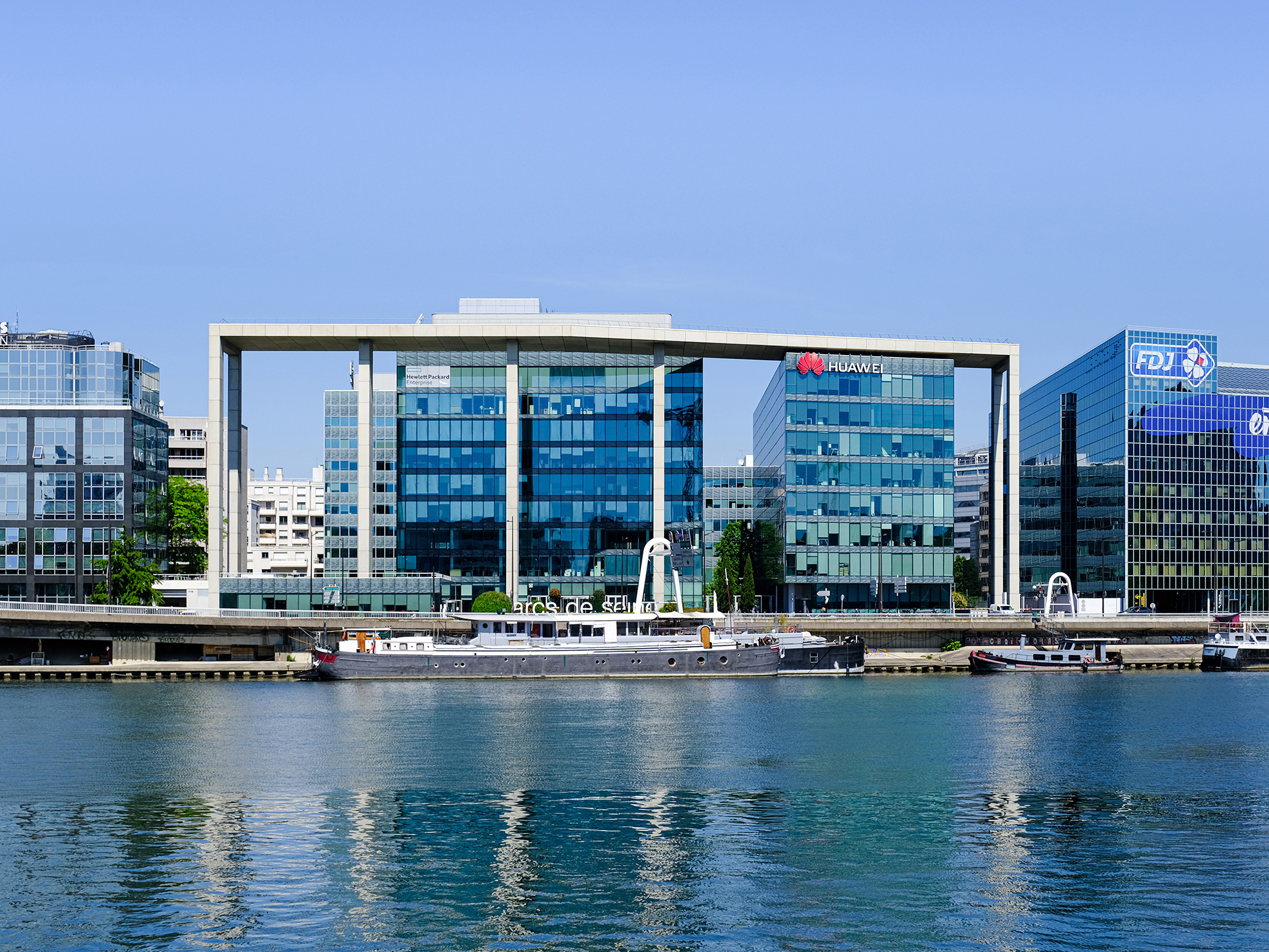 Construit en 1974 sur le quai du Point du Jour, cet ensemble tertiaire, conçu par l’agence new-yorkaise SOM, se compose de quatre édifices implantés en bord de Seine. Emblématique du paysage de Boulogne-Billancourt, il se distingue par son arche monumentale qui marque l’entrée du site, ainsi que par ses façades aux motifs géométriques évoquant les miroitements du fleuve en contrebas.