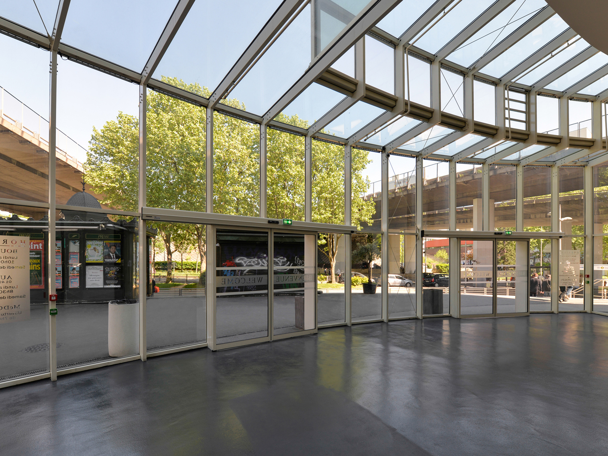 Dans le cadre d’une réhabilitation énergétique pilotée par le groupe EDF Optimal Solutions, la société USCO, gestionnaire du centre commercial Bel-Est à Bagnolet, nous a confié la transformation de son entrée principale. Cette intervention s’inscrit dans un ensemble de solutions d’optimisation énergétique, dont la plus emblématique est la création d’une serre pensée comme une véritable « bulle climatique », s’ouvrant sur le mail du centre.