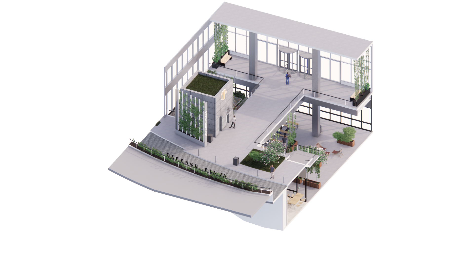 Situé en bordure du quartier d’affaires de La Défense, Défense Plaza a fait l’objet d’une requalification intérieure visant à améliorer la qualité des espaces communs ainsi que l’accueil des usagers.
